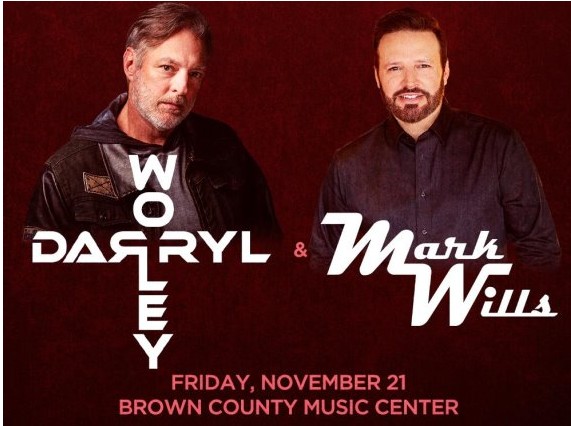 Nashville, Ind. (August 25, 2025) – Chart-topping country musicians Darryl Worley and Mark Wills will perform live at the Brown County Music Center in Nashville, Ind., on Friday, November 21, 2025.